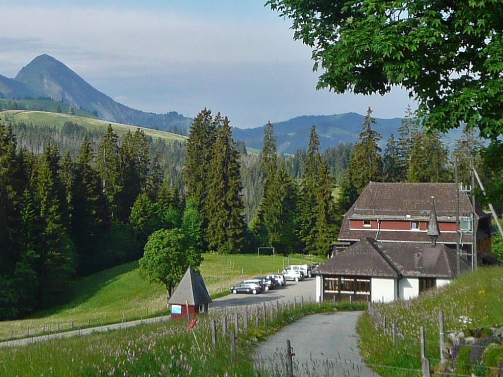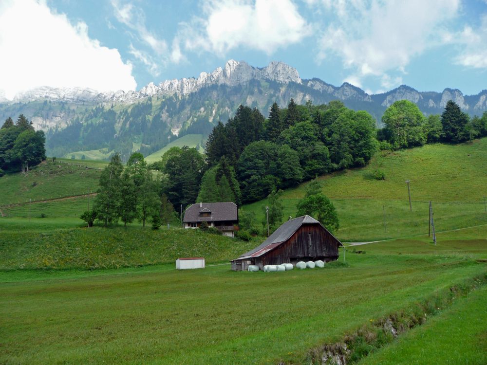 Über Sörenberg fahren wir nach Flühli, wo wir am Ortsanfang links abbiegen. So gelangen wir an das Ufer des Flüsschen Waldemme, wo wir auf einem Parkplatz unsere Autos abstellen können. Auf dem leicht erhöhten Uferweg laufen wir Richtung Dorfmitte und überqueren dort über die Autobrücke die Waldemme.Gleich nach der Brücke geht es durch ein Gatter auf eine Schafweide am Wiesenhang. Die Schafe schauen uns ganz ungläubig an, lassen uns unter Protestschreien, aber sonst widerstandslos, passieren. Ein weiteres Holzgatter am Waldrand hindert die Schafe am Davonlaufen und daran, dass sie uns bis zum Gipfel folgen. Wenig begangen scheint der Pfad durch den lichten Wald, denn das Gras steht hoch und verdeckt oft die Wegmarkierungen. Zudem ist das Gras nass, so dass die Hosenbeine bis zu den Knien feucht werden. Erst nach 20 Minuten, wie wir am Unt.-Spierberg auf ein Asphaltsträsschen stossen, haben die Hosenbeine wieder eine Chance zu trocknen. Schon nach 100 Metern verlassen wir das Asphaltsträsschen wieder und steigen zunächst auf einem Wirtschaftsweg weiter auf. Und kurze Zeit später trampeln wir von Markierungspfosten zu Markierungspfosten tiefe Furchen in das hohe Gras, wohl kaum zur Freude des Bauern. Weiter oben ist der Hang gemäht und bei Mittl.-Sperberg kommen wir gerade noch dem Bauern zuvor, der schon die Gülleschläuche zusammenschraubt. Ein paar Minuten später und er hätte uns mit Freude (?) eingesaut. Hinter dem Haus des fleissigen Bauern setzen wir uns für ein paar Minuten in den Schatten, bevor es weiter die steile Wiese aufwärts geht. Im hohen Gras ist die Wegführung wieder einmal unklar. Neue Spuren entstehen, bis wir in einem Waldstück wieder auf eine Wegmarkierung stossen. Von Markierung zu Markierung sucht sich im Wald, mangels ausgetretenem Pfad, jeder seine Ideallinie. Und am oberen Waldrand ist erstmals ein Zaun über eine Leiter zu übersteigen. Nicht einmal 5 Minuten dauert es bis zur nächsten Leiter, die wir an einem Bauernhaus bei Oberst Spierberg zur Zaunüberwindung übersteigen dürfen. Der Vorschlag, weglos den steilen Wiesenhang zum weit oben sichtbaren Gipfelkreuz aufzusteigen, stösst auf taube Ohren. Der Normalweg sieht etwas flacher aus und steuert das Gipfelkreuz in einem Bogen vom Süden her an. Zwar steht das Gipfelkreuz auf keinem Gipfel, aber die Aussicht ist trotzdem wunderbar. Ganz unten sehen wir die Häuser von Flühli und dazwischen ein paar Bauernhäuser am Hang des Sperberg, die wir währen unserer bisherigen Tour gestreift haben. In Süden sehen wir die steilen Wände und eine paar Gipfel der Schrattenflue und rechts im Hintergrund den Hohgant. Obwohl laut letztem Wanderwegweiser der Wanderweg weiter nordwestwärts bergauf gehen müsste, steigen wir über einen Weidezaun und queren weglos einen Wiesenhang in Richtung Westen. Trotzdem treffen wir bald wieder auf rotweisse Wegmarkierungen und die Himmelsrichtung ist auch plausibel. Ein paar Minuten laufen wir auf einer Höhenlinie entlang des steilen Südhangs. Die Sicht ins Tal und Richtung Schrattenflue ist fantastisch, sind doch die meisten Bäume unter uns gefällt. Dem Ruf nach einer Pause wird nachgegeben, so sucht sich jeder einen Baumstumpf als trockene Sitzgelegenheit und zieht sein Vesper aus dem Rucksack. Im Nordwesten ist schon der grüne Gipfel des Beichlen zu sehen. Dazwischen liegt jedoch eine Tiefe von mehreren Hundert Metern, so dass der direkte Weg mit enormem Höhenverlust verbunden wäre. Deshalb laufen wir nach der Pause in Richtung Westen weiter. Immer wieder sind Weidezäune über kleine Leitern zu übersteigen. Auf den feuchten Wiesen gedeihen die Orchideen ganz prächtig. Nach einer viertel Stunde kehrt der Pfad nach rechts, so dass wir ab jetzt in Richtung Norden auf den Beichlen zu laufen. Bis zu einem Wald steigt der Wiesenpfad ordentlich an. Dann folgt ein ausgetretener Pfad durch Heidelbeersträucher, auf dem wir im Auf und Ab nach etwa 20 Minuten eine Weggabelung erreichen. In zwei entgegengesetzte Richtungen zeigt der Wanderwegweiser den Beichlen an, mit einem Unterschied in der Gehzeit von 5 Minuten. Nicht nur wegen der geringeren Gehzeit wählen wir den zeitlich kürzeren Weg, auch ist dieser mit weniger Höhenverlust verbunden und ausserdem war dieser Weg von vorneherein geplant. Auf einem Wirtschaftsweg laufen wir etwa 300 Meter in Richtung Westen weiter. Dann zweigt ein Wiesenpfad scharf rechts ab. So können wir einer grossen Wandergruppe, die uns entgegen kommt, ausweichen. Diese verschwindet auf dem Wirtschaftsweg, den wir gekommen waren. Eine Grillstelle könnte jetzt zum Rasten verführen, doch so wenige Minuten vor dem Gipfel sind wir nicht mehr aufzuhalten. Zunächst durch den Wald, dann unterhalb des Grats und schliesslich auf dem Grat führt nun der Pfad in einer knappen halben Stunde auf den grünen Gipfel des Beichlen. Fast bis zum Gipfel weiden die Schafe, so dass wir auch wenige Meter vor dem Gipfel noch einmal über eine Leiter einen Weidezaun übersteigen müssen. Der Himmel hat sich inzwischen bedrohlich dunkel zugezogen. Bei Sonnenschein könnten wir lange auf den Gipfelbänken sitzen und die Aussicht geniessen. Aber bei frischem Wind und durchgeschwitzten Klamotten vergeht sie Lust am lange Sitzen, so ziehen wir bald weiter. Den Plan, dem Gipfelgrat zu folgen, lassen wir wegen der unsicheren Witterung fallen. Im Osten umgehen wir den Gipfel, steigen ein paar Meter mit Drahtseilunterstützung eine Felsrinne ab und folgen noch ein paar Meter der Grathöhe. Dann scheint uns ein steiler Wiesenhang zwischen den senkrechten Wänden von Nagelfluhgestein zum weglosen Absteigen in Richtung Osten geeignet. Je tiefer wir absteigen, um so deutlicher kristallisiert sich das Ziel dieser Zwischenetappe heraus. Wir steuern ein Bauernhaus an, auf dessen abgesetzter Terrasse mehrere Personen beim fröhlichen Umtrunk sitzen. Es handelt sich um den Bauernhof Bösarni. Schon viele Meter vor dem Bauernhof empfangen uns Ziegen, dann lautstark e