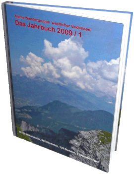 Die Alpine Wandergruppe hat im Kalenderjahr 2009 insgesamt 40 Wanderungen gemacht und dabei in 227 Stunden 32680 Höhenmeter bestiegen und 684 Kilometer zurückgelegt. Davon sind 21 Wanderungen im Band 1 des Jahrbuches 2009 aufgeführt. Zu den restlichen Wanderungen ist Band 2 in Vorbereitung.
