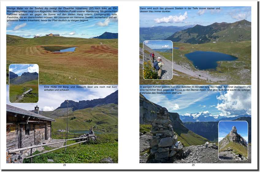 Zu jeder Wanderung werden Kartenausschnitt, Höhenprofil, technische Daten, Tourenbeschreibung und eine Auswahl von Bildern im Buch dargestellt.