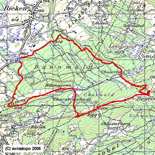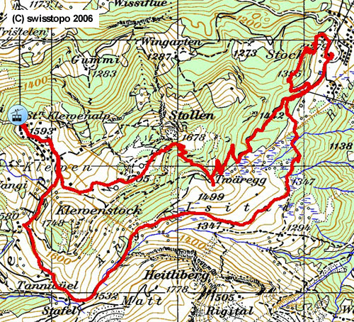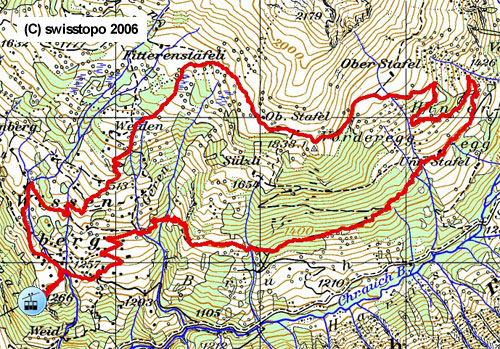 |  | Chalberweidli - Wassersprung - Waldhütte - Ijen - Kreuz Namenlos - Spital - Regenegg - Gschwändstock - Butziflue - Stockhütte - Amselspitz - Ufem Tritt - Chälen - Chalberweidli |