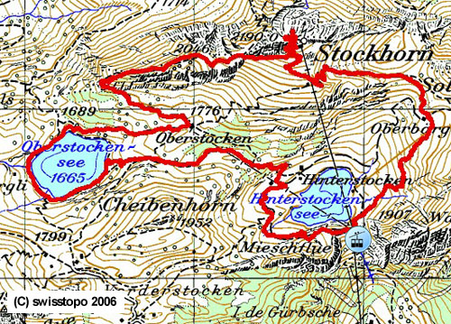 |  | Chrindi - Oberbärgli - Stockefeld - Stockhorn Restaurant - Stockhorn Gipfel - Oberstockenalp - Oberstockensee - Sagenhütte - Hinterstockenalp - Chrindi |