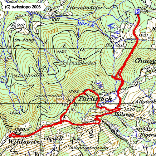 |  | Cholerhütte - Geissfarren - Halsegg - Langmatt - Wildspitz - Langmatt - Leiter - Türlistock - Halsegg - Geissfarren - Cholerhütte |