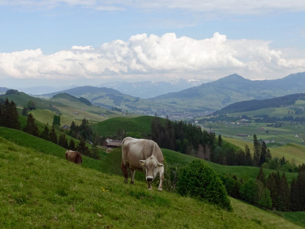 ![]() Bild 46: Kuh un Blick Richtung Appenzell | ||||||||||||||||||||||||||||