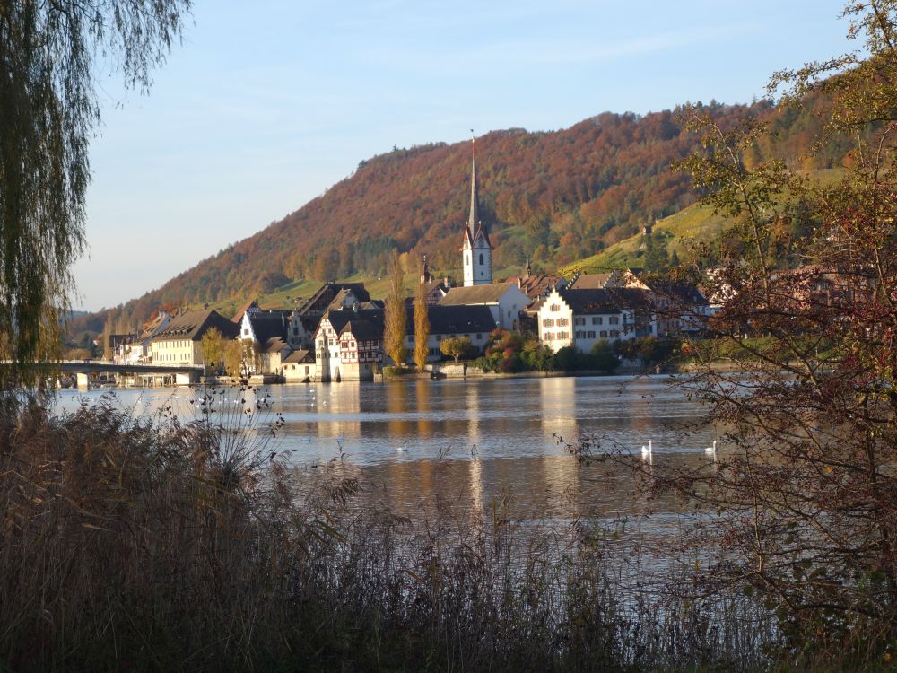 Am Bahnhof von Stein am Rhein stehen gebührenpflichtige Parkplätze zur Verfügung. Für fünf Schweizerfranken kann man sein Auto einen Tag lang stehen lassen. Die nächst kürzere Parkdauer sind vier Stunden, zu unsicher für eine Wanderung. Der Wanderwegweiser vor dem Bahnhofsgebäude zeigt Nussbaumen mit einer Gehzeit von 1 Std. 25 Min. an. Der Weg führt durch die Unterführung.
