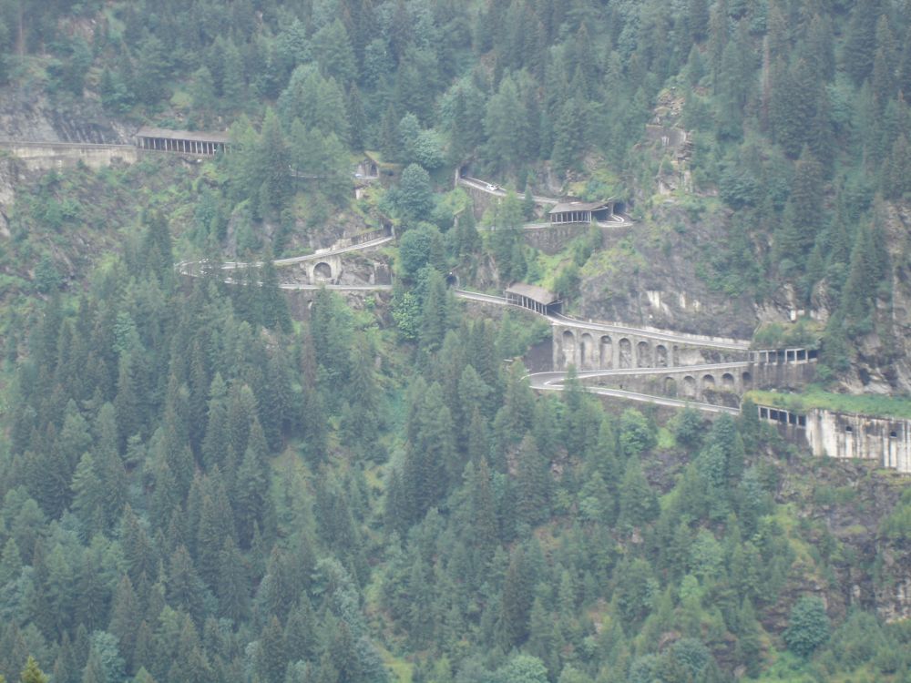 S a m s t a g, 30.07.2005 Über das Rheintal, an Chur vorbei, reisen wir in Richtung Süden und machen einen Zwischenstop in der Schlucht Viamala. Für 8,00 SFR (5,00 Euro) Eintritt dürfen wir über Treppen tief in die Schlucht absteigen. Über Tunnel und in Fels gesprengte Gänge gelangen wir in beeindruckende Ecken der Schlucht. Hoch über unseren Köpfen überspannen alte Brücken die Schlucht. Auf einer der Brücken will ein deutscher Tourist sein Wohnwagengespann wenden, da ihm die Strasse zu steil wird. Hoffnungslos!!!!!! | ||||